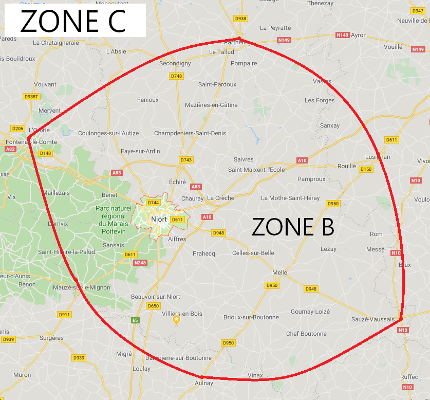 Les cartes ci-contres délimitent approximativement ces zones pour vous permettre d’avoir une idée du tarif appliqué.