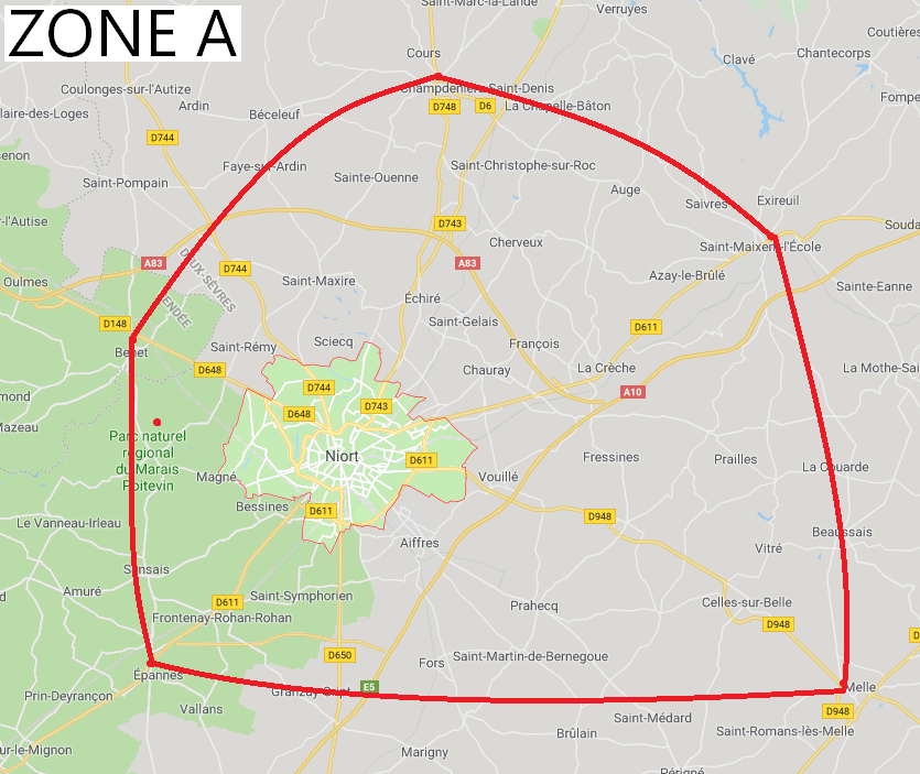 Le prix de la livraison est fixé suivant votre secteur d’habitation défini en trois zones A, B et C.